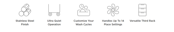 Ensure sparkling clean and sanitized dishes every time with six versatile wash cycles tailored to meet your specific cleaning needs. From gentle cycles for delicate items to powerful options for stubborn stains, these wash cycles deliver thorough cleaning performance, maintaining your dishes' pristine condition effortlessly.