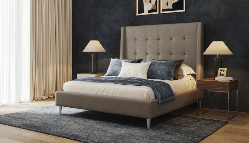 Palermo features a modern take on a classic wingback headboard design, with a grid tufting detail for added character. Fashion-forward and luxurious, this bed is available in 54" or a dramatic 64" height.