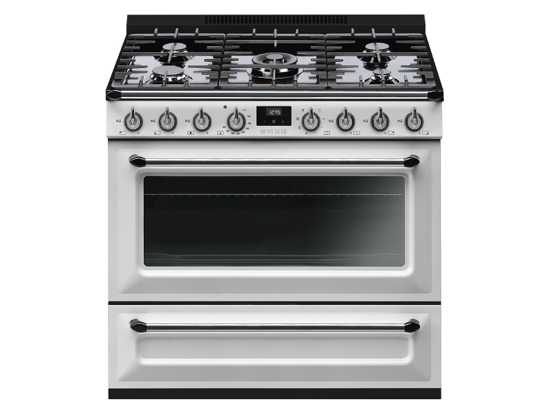 36" SMEG 4.45 Cu. Ft. Cooker Victoria Freestanding Dual Fuel Range with 5 Burners in White - TRU36GMWH