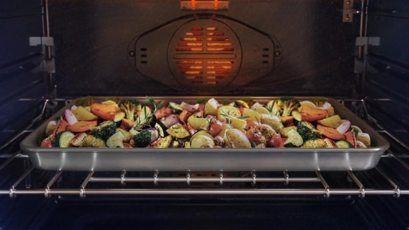 An easy-fill water tray lets you bake, broil, and roast with added steam, which can help you to cook foods that are moist and flavourful.