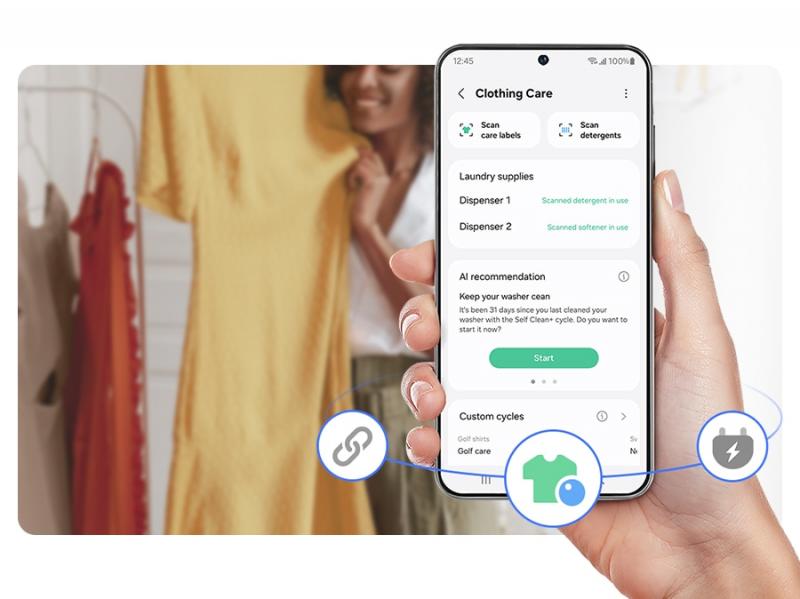 Enjoy a personalized and efficient laundry experience. Clothing Care, part of the SmartThings App*, analyzes your usage** and other factors to make recommendations and create customized drying cycles to suit your lifestyle***.8