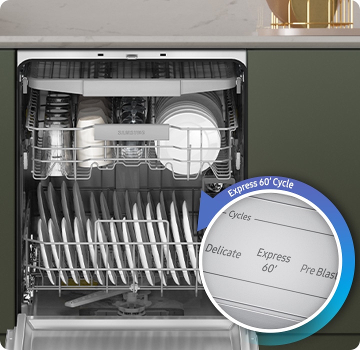 At end-of-cycle, the door automatically opens to circulate air and improve drying performance.
