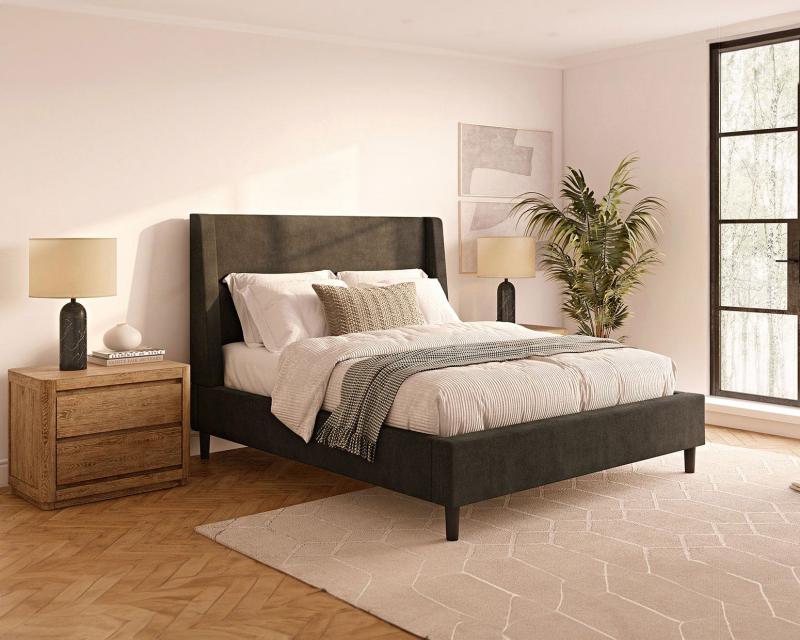Skye is a modern take on a classic wingback headboard design. With a soft padded face and tapered wings, this look creates a light and open feel. Choose from 54" height, or 64" for a dramatic visual impact.