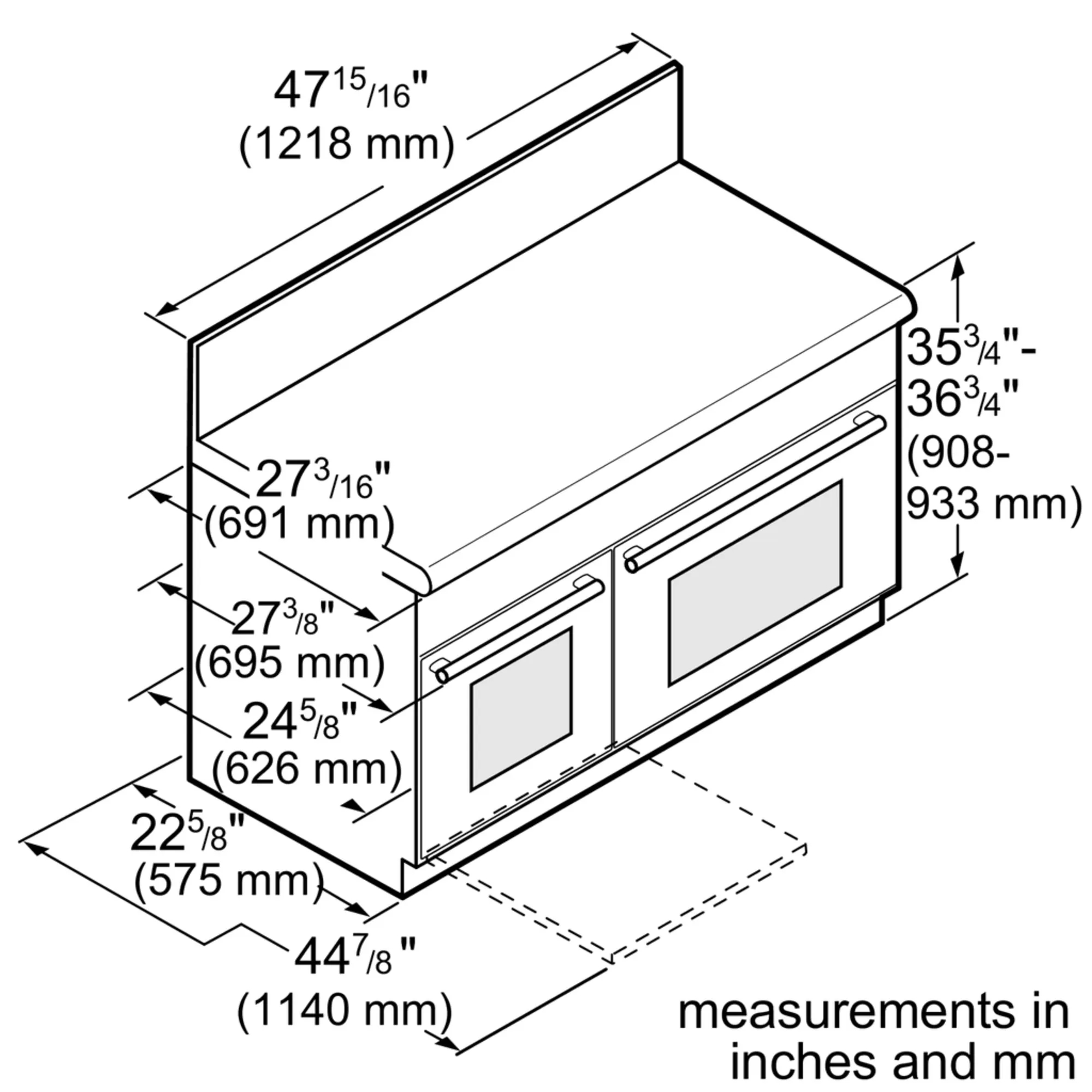 | Required Cutout Size (HxWxD) | 35 3/4" – 36 3/4" x 48" x 24" |