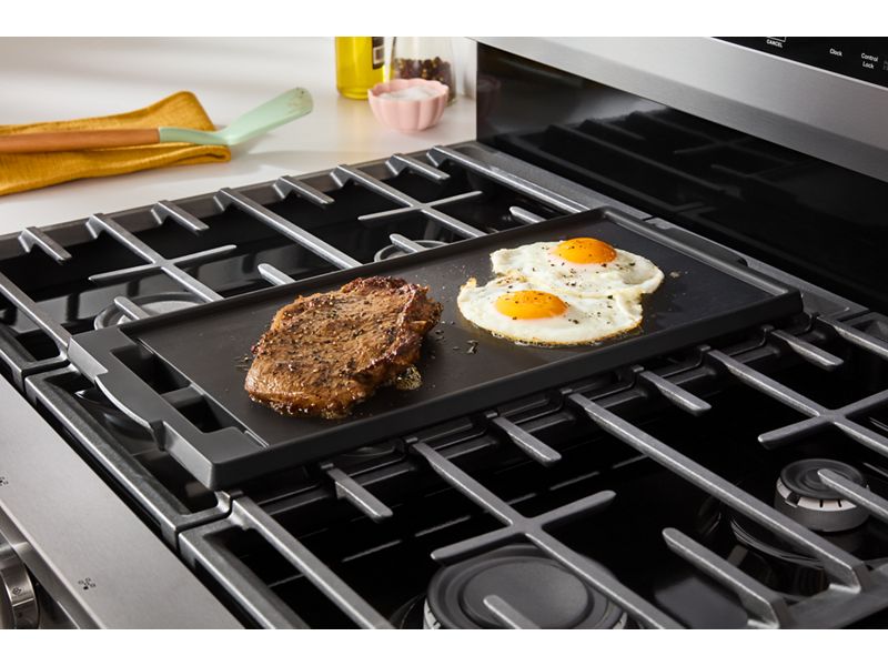 Experience the difference of Air Cooking Technology with this Whirlpool 30 inch gas range. Get crispy with our most advanced No Preheat Air Fry mode, and even results on every rack with Air Baking. Cook up all that delights, all at once with Griddle Zone, and cleanup quick with industry-first EZ-2-Lift™ Hinged Cast-Iron Grates. Make feel good meals with a variety of Cooking Modes, and tackle your to-do list with features built for multitasking.