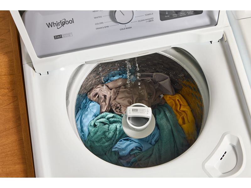 Choose how you handle each hamper with the Whirlpool® Top Load Washer with 2-in-1 Removable Agitator. The 2-in-1 Removable Agitator lets you choose how you wash. Easily swap in the agitator to help with soils or remove for extra capacity to fit large & bulky items. Presoak helps you to gently release soils with a 30 minute presoak and wash all in one cycle. Sanitize cycle cleanses loads with increased wash temps and Oxi. Cold Water Wash allows you to get a thorough clean and save on energy bills.