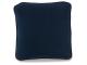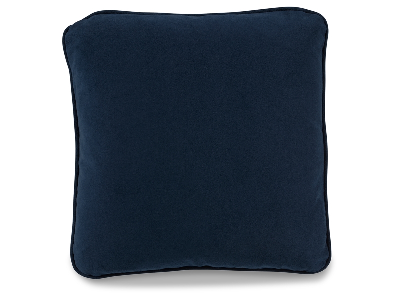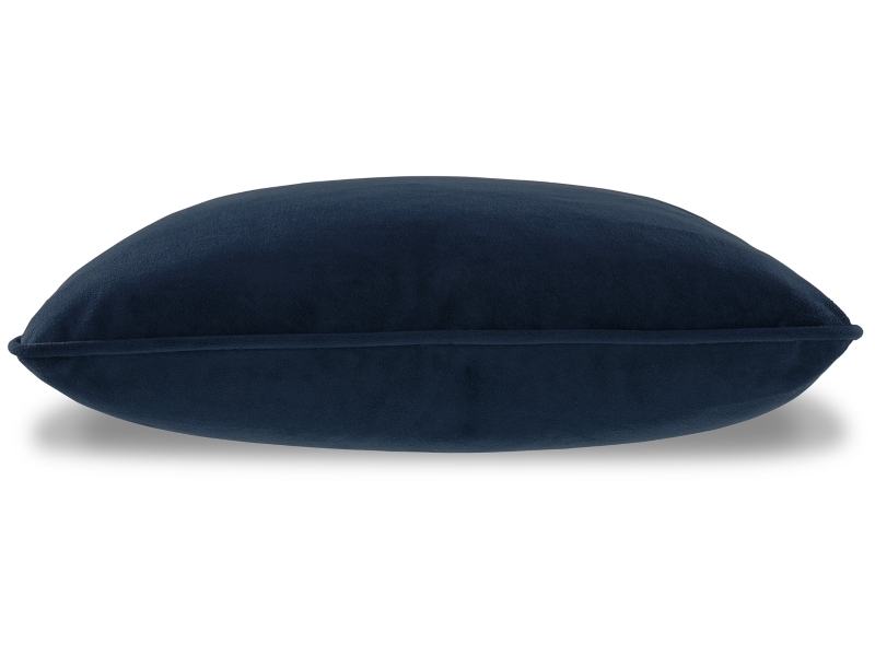 Velvet in navy. Welted edge construction. Polyester cover. Zipper closure. Feather filled. Machine washable cover.