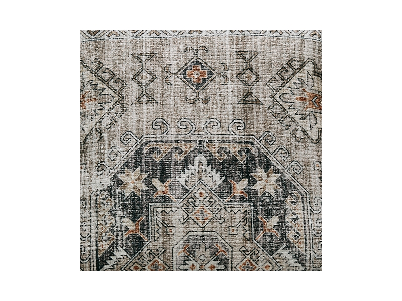 Printed medallion design in shades of brown, black, cream and rust. Solid reverse in cream. Polyester chenille cover. Zipper closure. Fiber filled. Spot clean only.