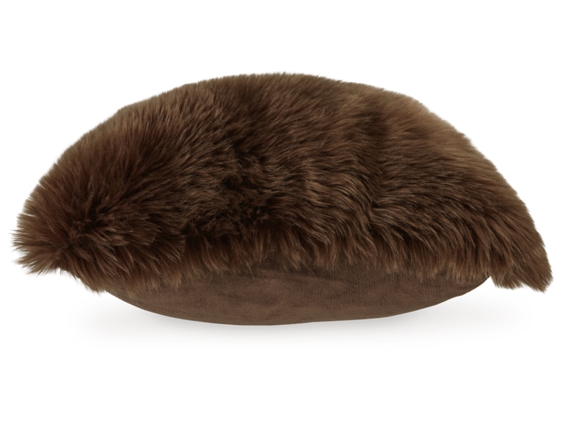 Faux fur in brown. Solid reverse in brown. Acrylic/polyester blend face with polyester reverse. Zipper closure. Fiber filled. Dry clean only.