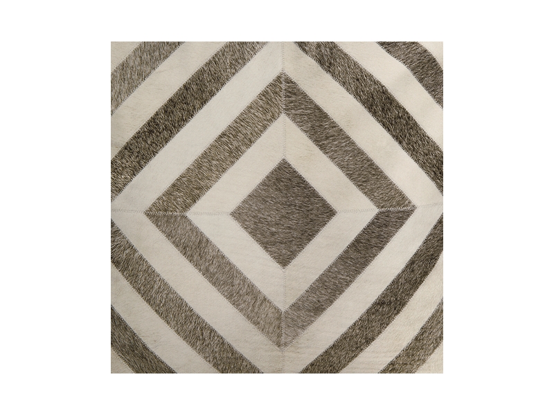 Faux hair on hide diamond design in shades of brown. Polyester cover with polystyrene bead filling. Zipper closure. Spot clean only.