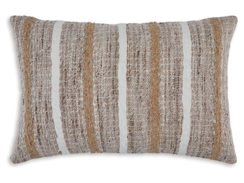 This lumbar accent pillow lends casual style and personality to any room. Its neutral striped design is an easy way to refresh your furniture for a new look and feel. Therapeutic as well as appealing, this pillow provides back support no matter where you're sitting.