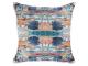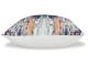 Printed abstract design in shades of blue, teal, gold, pink and white. Solid reverse in white. Knife edge construction. Polyester cover. Zipper closure. Fiber filled. Machine washable cover.