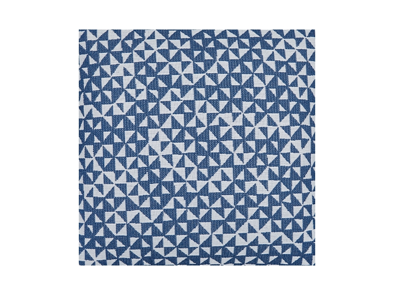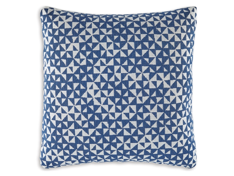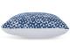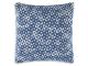 Woven geometric design in blue and white. Solid reverse in white. Next-Gen Nuvella acrylic face with polyester reverse. Indoor/Outdoor safe. Zipper closure. Fiber filled. Machine washable cover.