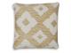 Woven geometric design in yellow, brown and cream. Solid reverse in cream. Next-Gen Nuvella polyester cover. Indoor/Outdoor safe. Zipper closure. Fiber filled. Machine washable cover.