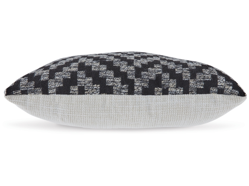 Woven chevron design in black, white and cream. Solid reverse in cream. Next-Gen Nuvella polyester cover. Indoor/Outdoor safe. Zipper closure. Fiber filled. Machine washable cover.