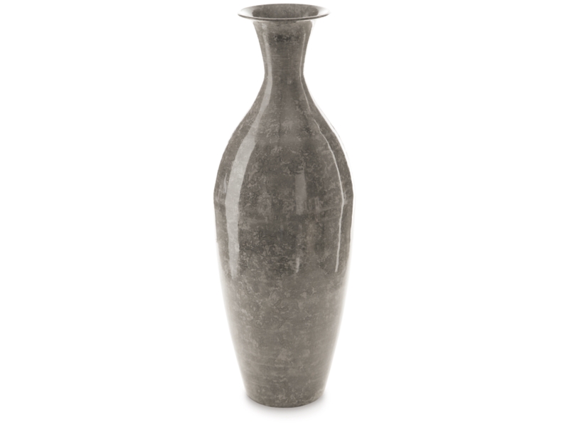 Vase. High gloss antique gray finished metal. Due to the finishing process of this product, some variations may occur