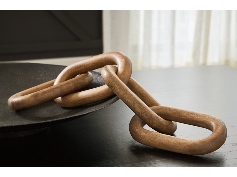 This sculpture sets the standard for casually cool art. Interlocking wood rings in a natural brown finish add an organic element to your decor. When displayed on a TV stand or fireplace mantel, or draped across a stack of books, it's such an impressive focal point.