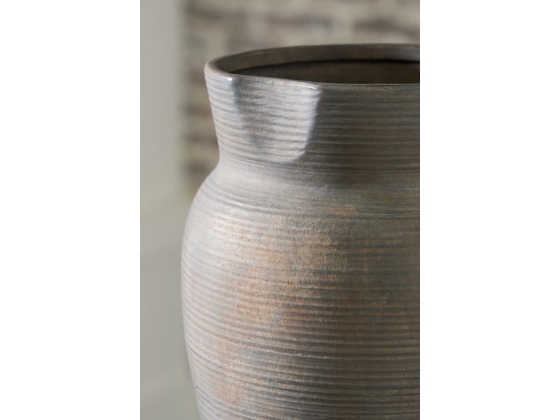 Contain your enthusiasm for casual earthy elegance. Loaded with a sense of antiqued beauty, this stunning ceramic vase adds a beautiful timeworn quality to your home. Let it wow on its own, or kick things up a notch and fill it with faux or dried bouquets.