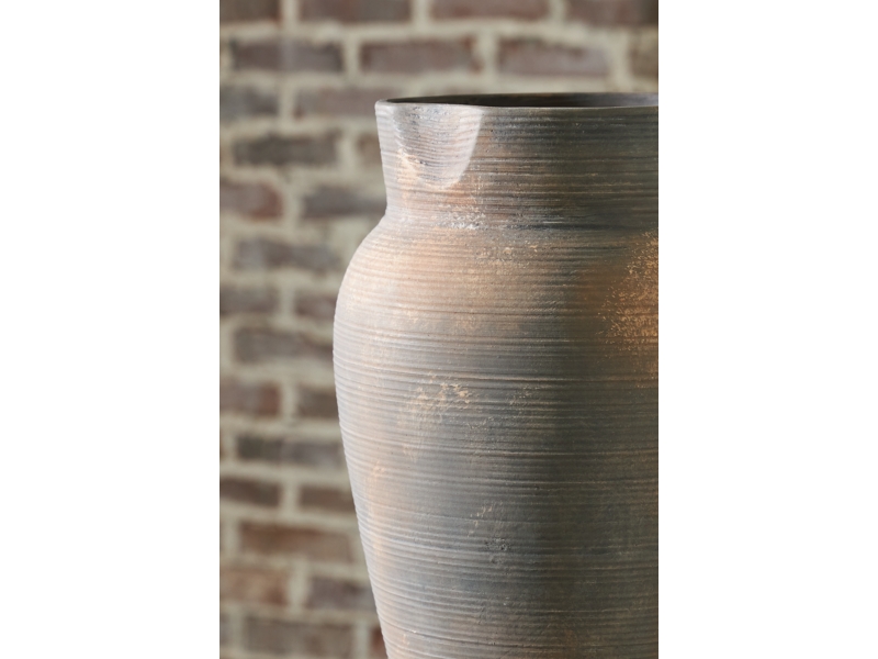 Contain your enthusiasm for casual earthy elegance. Loaded with a sense of antiqued beauty, this stunning ceramic vase adds a beautiful timeworn quality to your home. Let it wow on its own, or kick things up a notch and fill it with faux or dried bouquets.