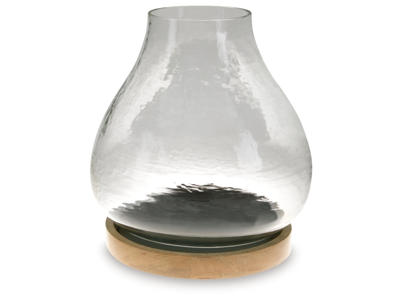 - Clear glass hurricane with hammered effect