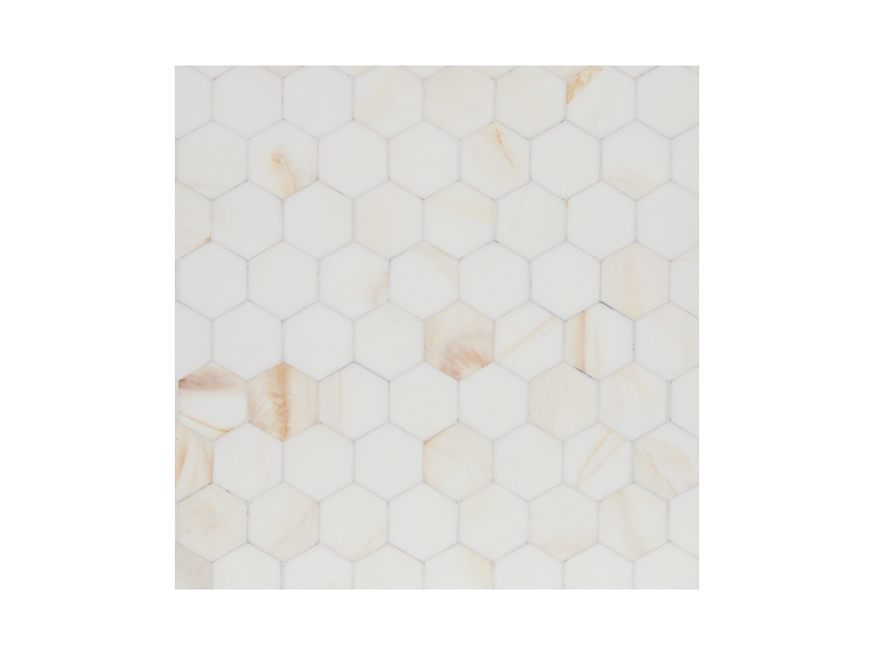 Set of 2 boxes. Cream finished hexagonal resin mosaic and cream finished engineered wood. Due to the finishing process of this product, some variations may occur.