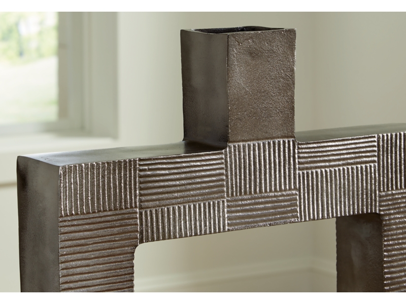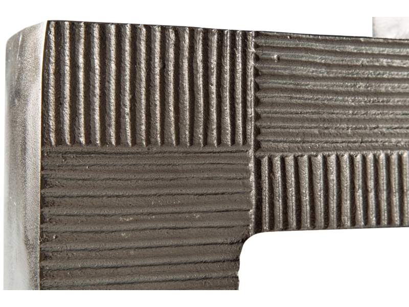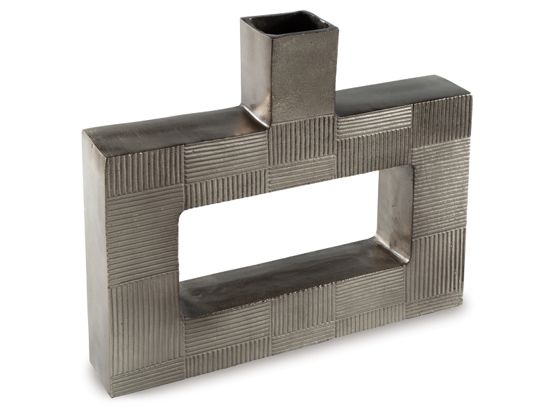 Stunning from all angles, this vase's contemporary geometric form acts as a captivating focal point for your mantle or bookshelf. Its antiqued nickel-tone body is detailed with subtle texture for added visual appeal. What a perfect fit for those seeking forward-thinking style.