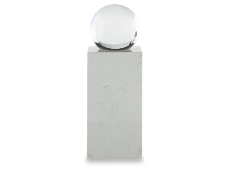 - Made with clear crystal and white marble
