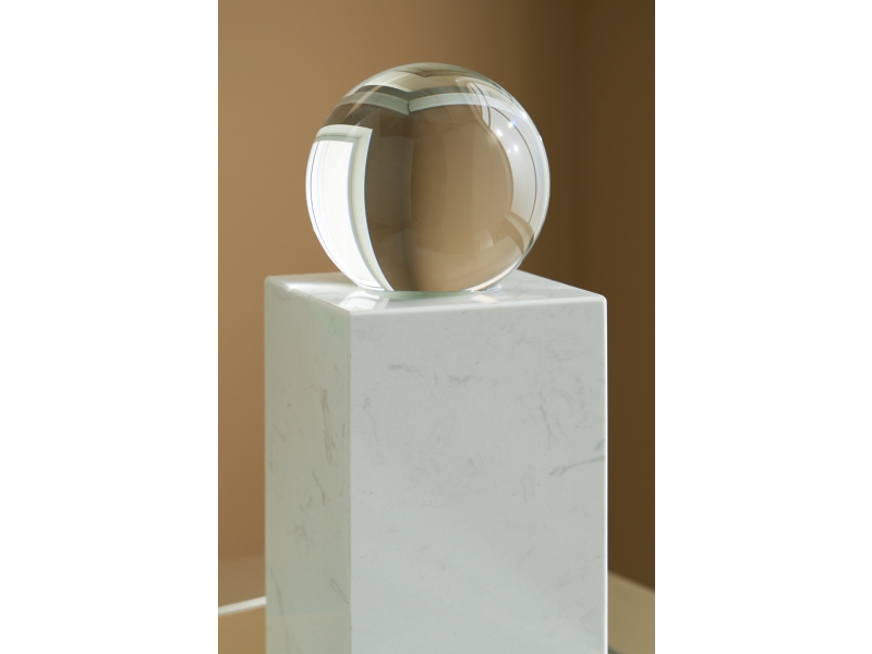 Sculpture. Clear crystal and white marble. Due do the use of natural materials, some variations may occur.