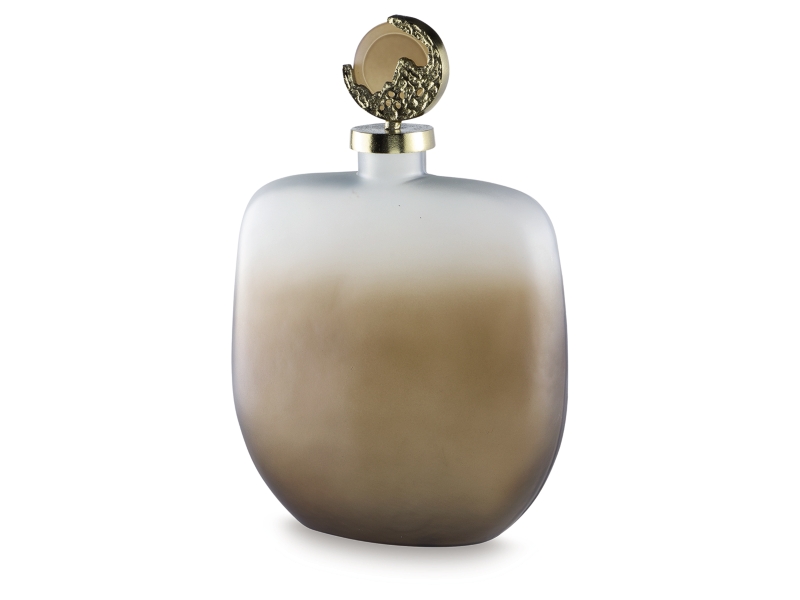 Jar. Taupe finished frosted glass and gold finished cast aluminum. Ombre effect. Due to the finishing process of this product, some variations may occur.