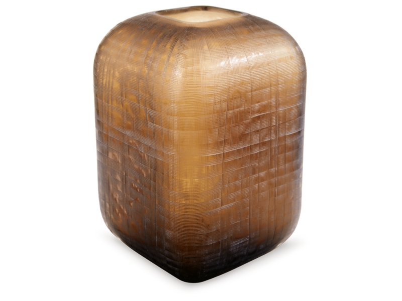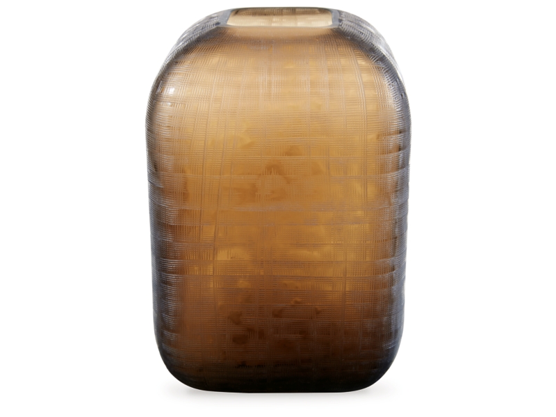 Vase. Indoor/outdoor safe. Brown finished glass with fine grid texture. Due to the finishing process of this product, some variations may occur.