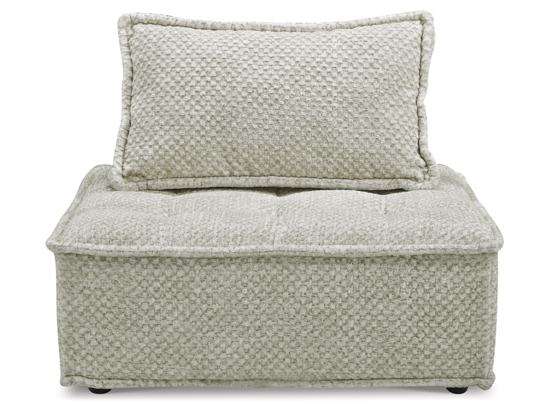 Accent Chair. Modular Armless Floor Seating. Upholstered in Taupe Checker Patterned Plush Polyester Fabric. Double Jumbo Welted Pillow and Bolster with Non-Slip Decking. Tufted Seat Cushion with Jumbo Welted Top and Bottom. Black Plastic Non-Slip Feet.