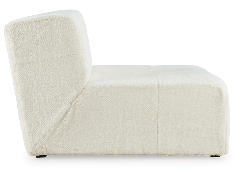 Accent chair. Armless. Upholstered in ivory faux fur polyester fabric. Tight back and seat. Non-skid legs.