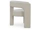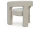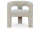 Accent chair. Upholstered in an ivory boucle polyester fabric. Barrel back with cutout detail and tight seat.