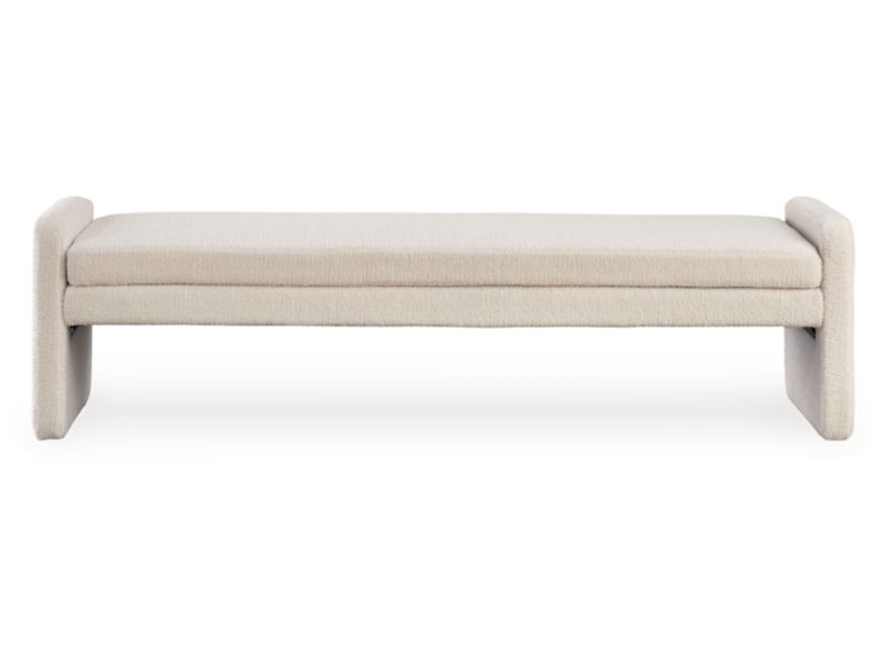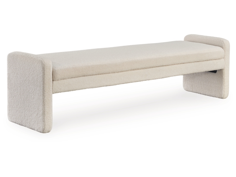 This accent bench helps you craft a cozy space without sacrificing the high-style vibe you love. Clean lines and a simple silhouette give it a contemporary, tailored feel. Inviting faux shearling fabric and rounded edges soften the look. Whether it's at the end of your bed or welcoming guests in the entryway, this piece is sure to make a statement.