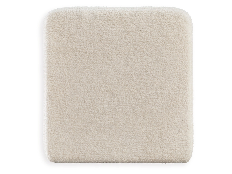 Accent bench. Upholstered in an ecru faux shearling fabric.