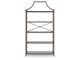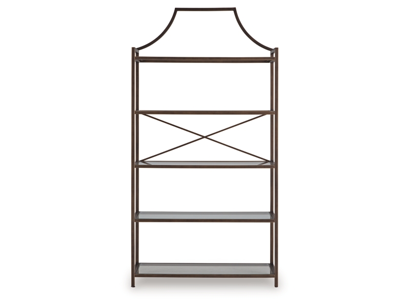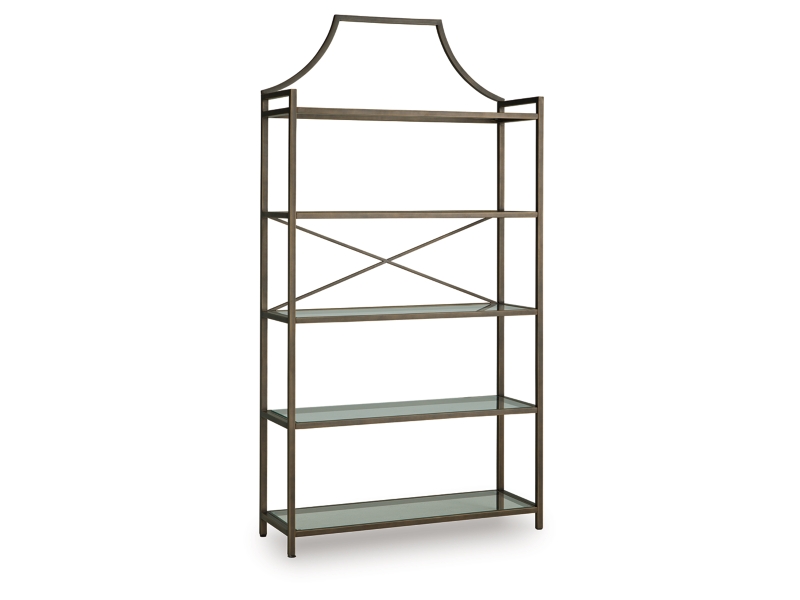 Classic design effortlessly blends with modern functionality in this elegant bookcase. Its antiqued bronze-tone finish adds a touch of warmth and sophistication, while the clear glass shelves create an airy and spacious feel. It’s exactly what you’ve been searching for to display your treasured books, digital picture frames or decorative accents.