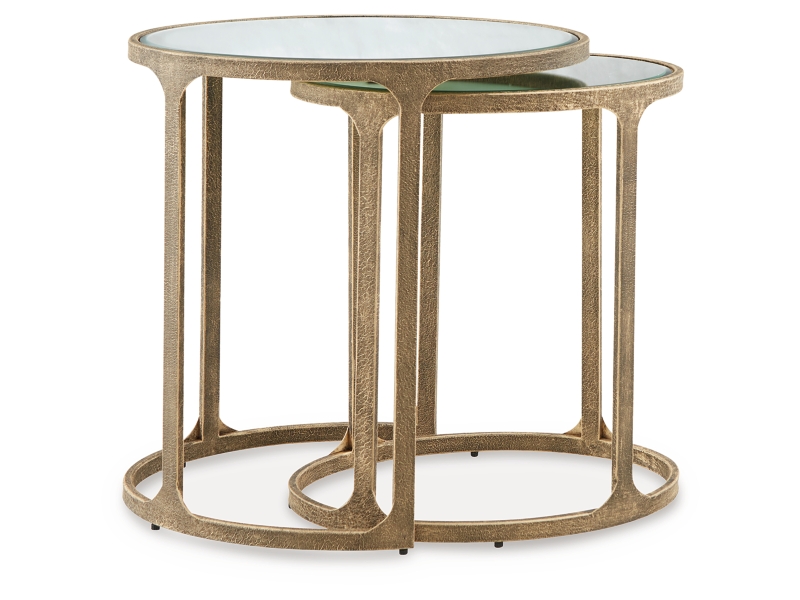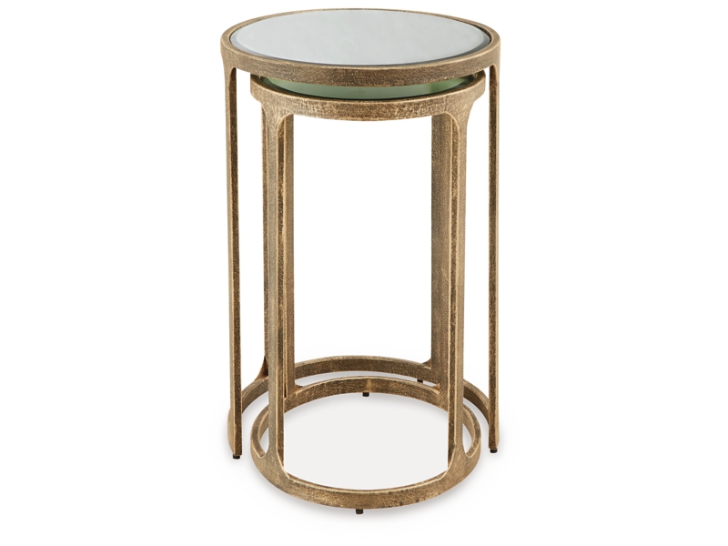 Looking to add a touch of traditional style to your space? You’ll delight in the classic appeal of this accent table set. Mirrored tabletops, supported by antiqued goldtone bases, bring light, dimension and glam character. A nesting design allows you to stage the tables solo or tuck them neatly together.