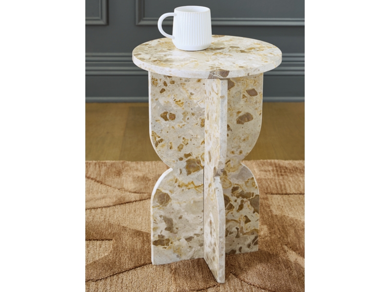 Accent table. Constructed of beige marble. Due do the use of natural materials, some variations may occur.