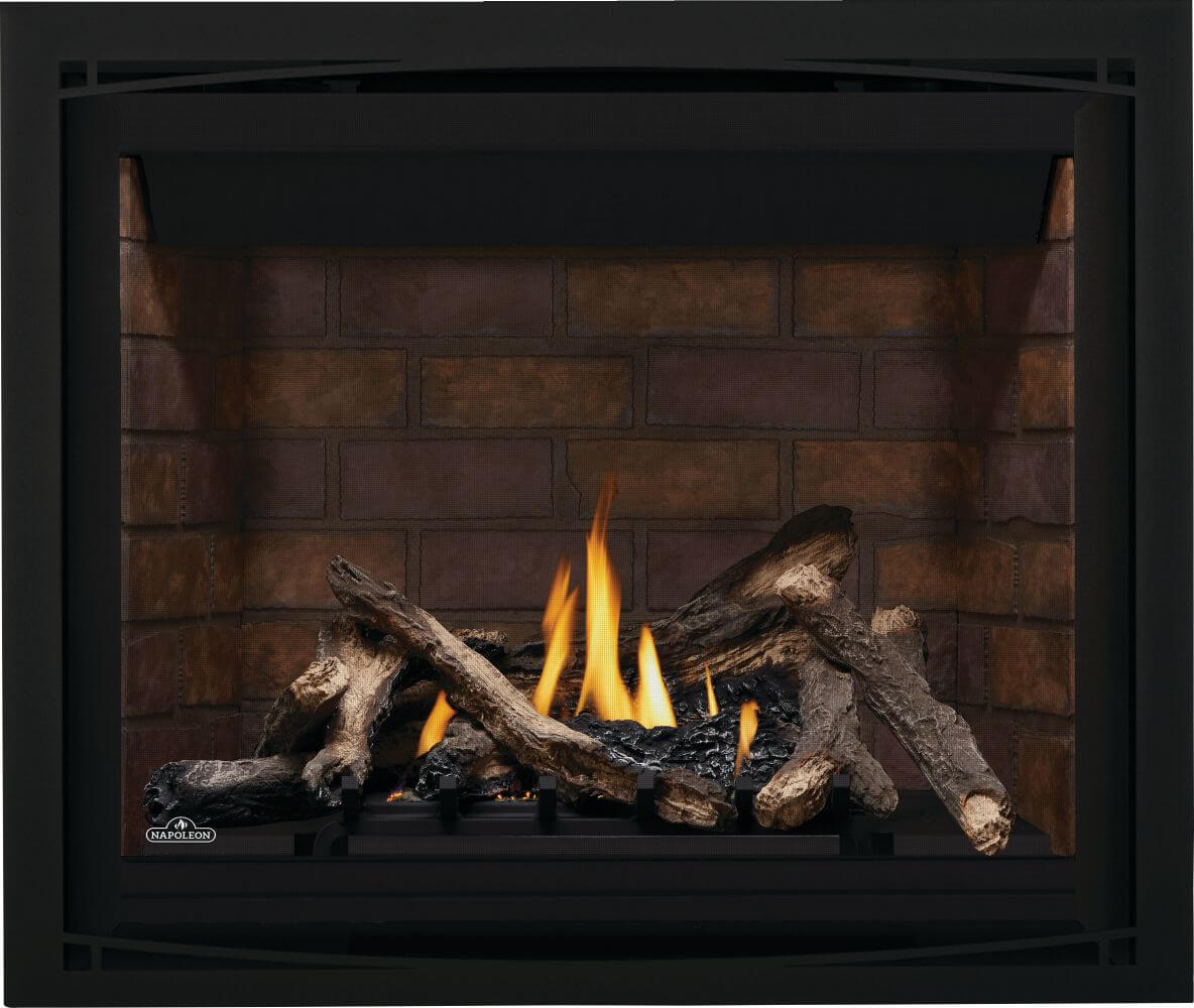 Designed for visual pleasure, the aesthetically pleasing Altitude 42 gas fireplace is a traditional-style fireplace with a multitude of customizable options. Installation is easy and the clean-faced design provides expansive views of the firebox without obstruction. The hand-painted, split oak log set comes standard, with optional decorative brick panels including MIRRO-FLAME Porcelain Reflective Radiant Panels, Black Illusion Glass, Westminster Standard or Herringbone, and Newport Standard. There are also five different options of trims to further complete the look. Provide yourself with even more installation opportunities with the optional Passive Universal Heat Management which provides easier placement of your favorite art and electronics. Include the optional remote to operate this fireplace from the comfort of your favorite spot. The only question is, how will you style the Altitude 42 to make it truly yours?
