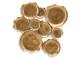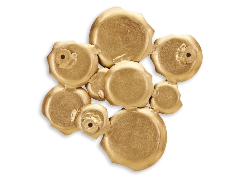 Antique gold finished metal wall sculpture. Geometric design. I-ring bracket for hanging. Hangs four ways. Due to the finishing process of this product, some variations may occur.