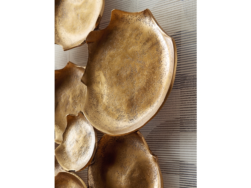 With a minimalistic design and antiqued goldtone finish, this wall art exudes modern sophistication. Whether it's displayed vertically or horizontally, this alluring metal sculpture is on the cutting edge of cool.