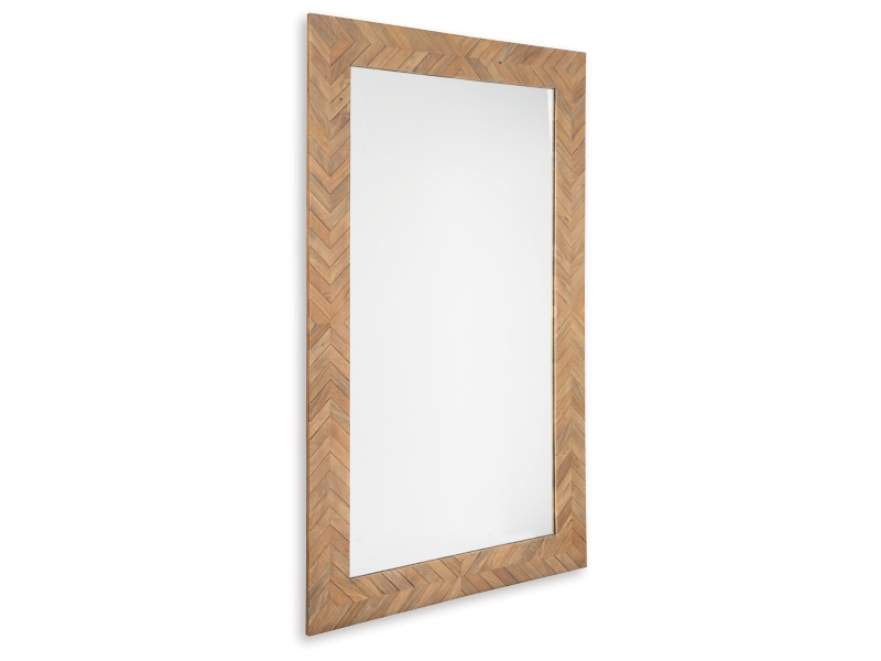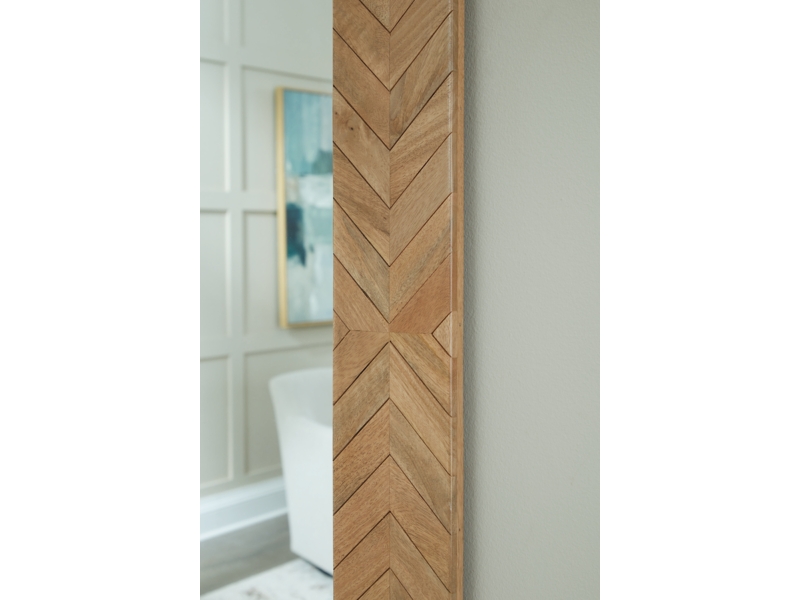 Light brown finished wood floor mirror. Chevron design. D-ring bracket for hanging. Vertical hanging only. Due to the use of natural materials, some variations may occur.