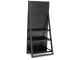 Black finished floor mirror. Cheval standing frame with (3) storage shelves, no hanging hardware. LED light with sensor touch on/off controls on the mirror.