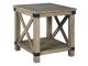 Crafted with solid pine wood treated to a weathered gray finish, this end table is rustic farmhouse living at its best. Crossbuck styling adds striking flair. Metal industrial brackets incorporate an industrial twist.