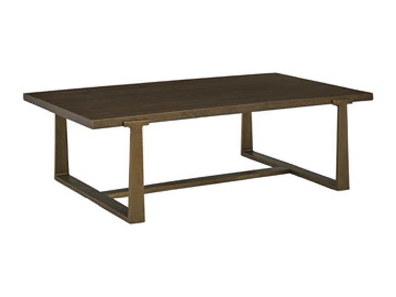Chic and sleek, this coffee table satisfies your taste for contemporary design. Its warm brown top is neutral and refined, while the antiqued goldtone base adds textural character. Place your favorite decorative accents on top to transform your living room into a curated modern masterpiece.