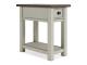 Whether your style is farmhouse fresh, shabby chic or country cottage, you’ll find this chairside end table dressed to impress. Its two-tone finish pairs weathered oak with antique white for that much more quaint character. Charming elements include a plank-and-frame style top, black faceted hardware and a smooth-gliding drawer for remote controls and more. Integrated power supply with dual USB charging ports is ideal for keeping your personal devices at the ready.