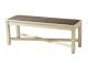 The beauty of this upholstered dining bench is something to savor. Serving up comfort and flair, this generously scaled bench entices with a cushioned seat covered in a heavy woven fabric that complements the antiqued white finish.