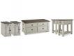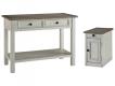 - Two-tone finish (weathered oak over antique white)