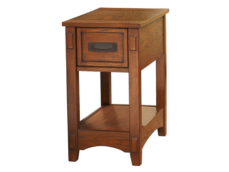 All the great elements of Mission-style design—including mortise-and-tenon decorative overlays—packed into an adorably sized chairside end table. Small but essential, this accent table includes a deep drawer with removable tray for handy storage.