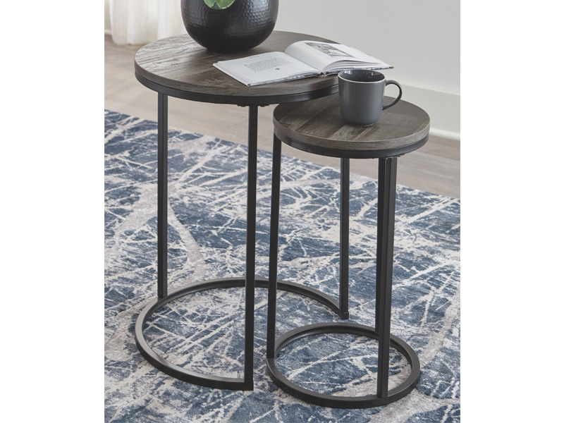 Tight budget? Tight space? You’re all set with this nesting table set. Clean-lined round design is decidedly contemporary, while gray washed tops serve up casual coolness.